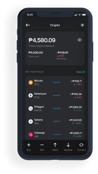 Who said you need a lot of money to start growing your wealth? For as little as P1, you can start to buy, sell, send and receive crypto coins like SOL, QNT, ETH, BTC, and more