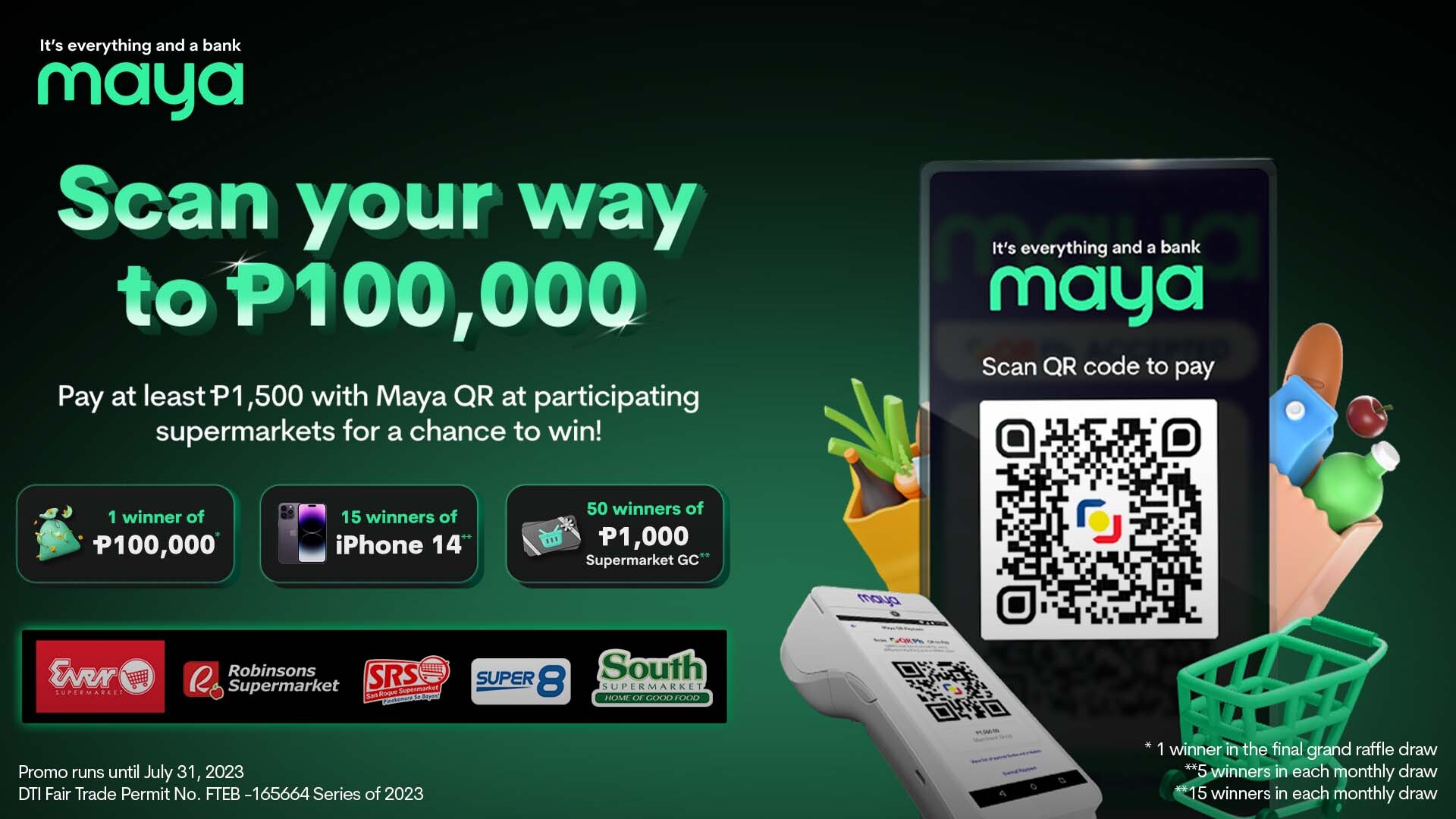 Scan to pay with Maya QR for a minimum spend of ₱1,500 to earn a raffle entry
