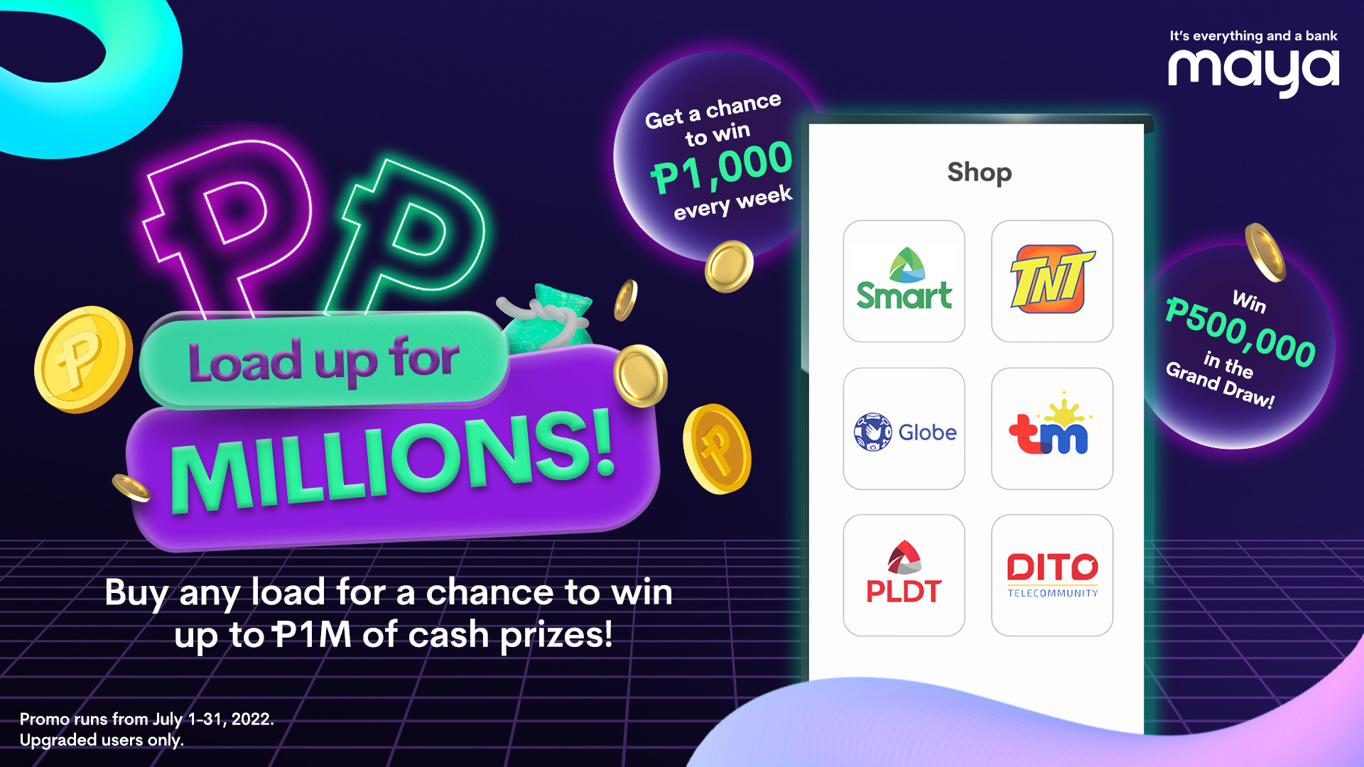 | Weekly Draw | July 22-31, 2022 | 25 winners | PHP 1,000/winner |