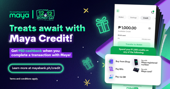 Get ₱50 cashback when you complete a transaction with Maya Credit!