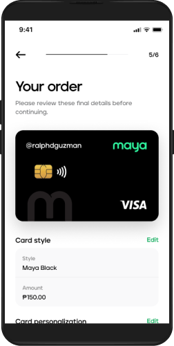 1Tap on the order Maya card button on the app